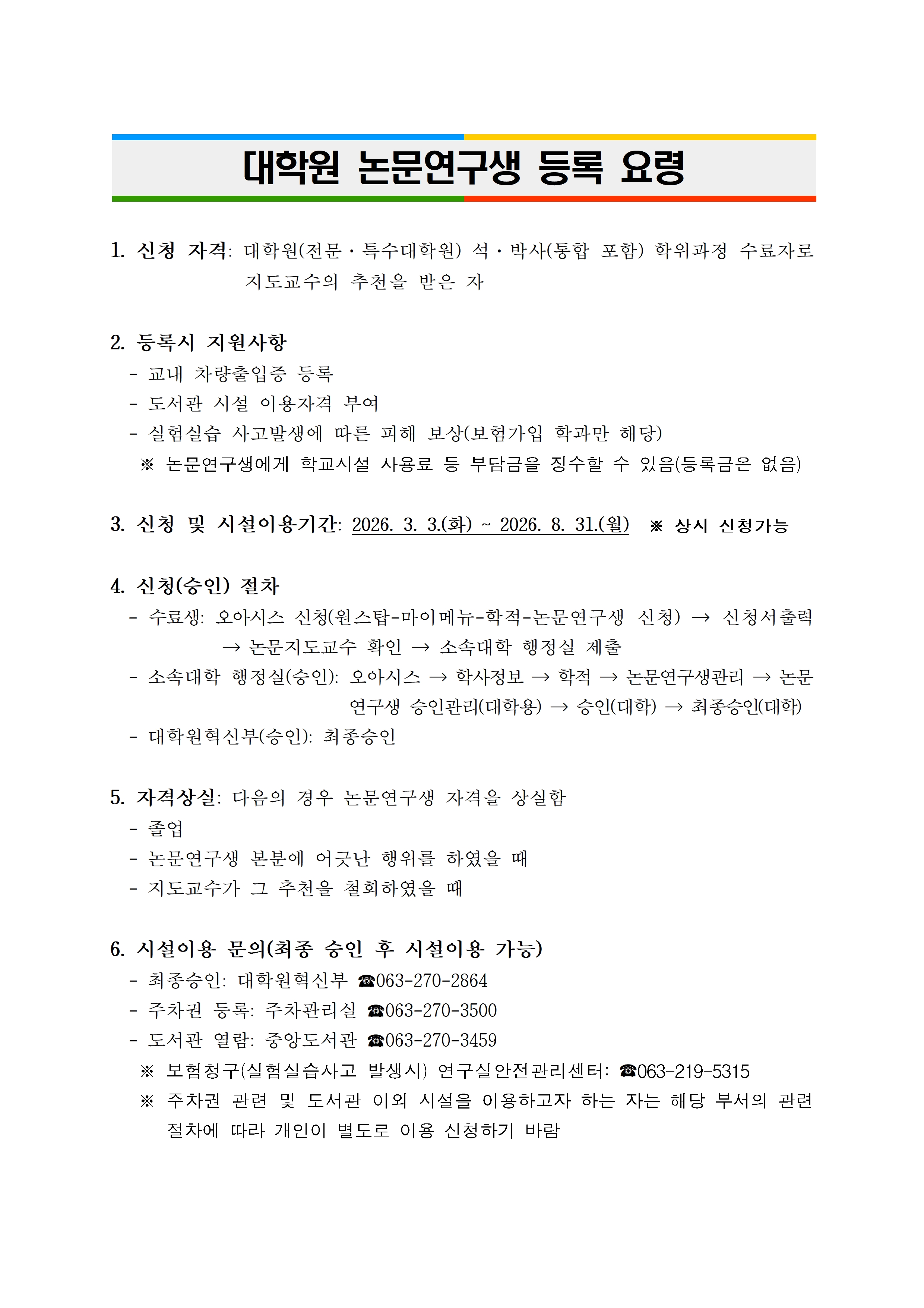 2026학년도 제1학기 대학원 논문연구생 등록 안내